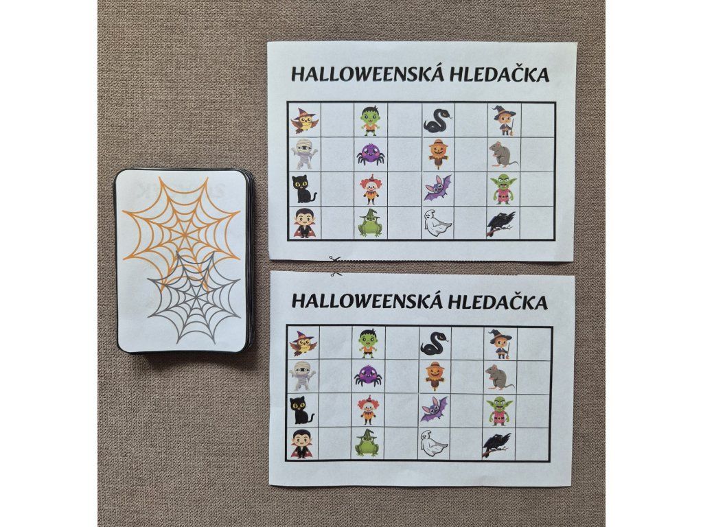 - Snadná příprava – stačí vytisknout, rozvěsit kartičky a začít hrát