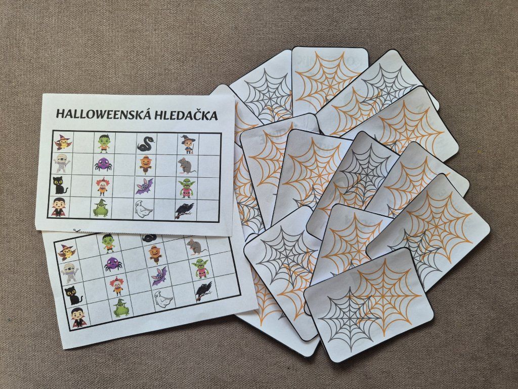 - Hravé hledání a sbírání obrázků s halloweenskou tématikou, které děti motivuje k pohybu, rozvíjí pozornost a orientaci v prostoru
