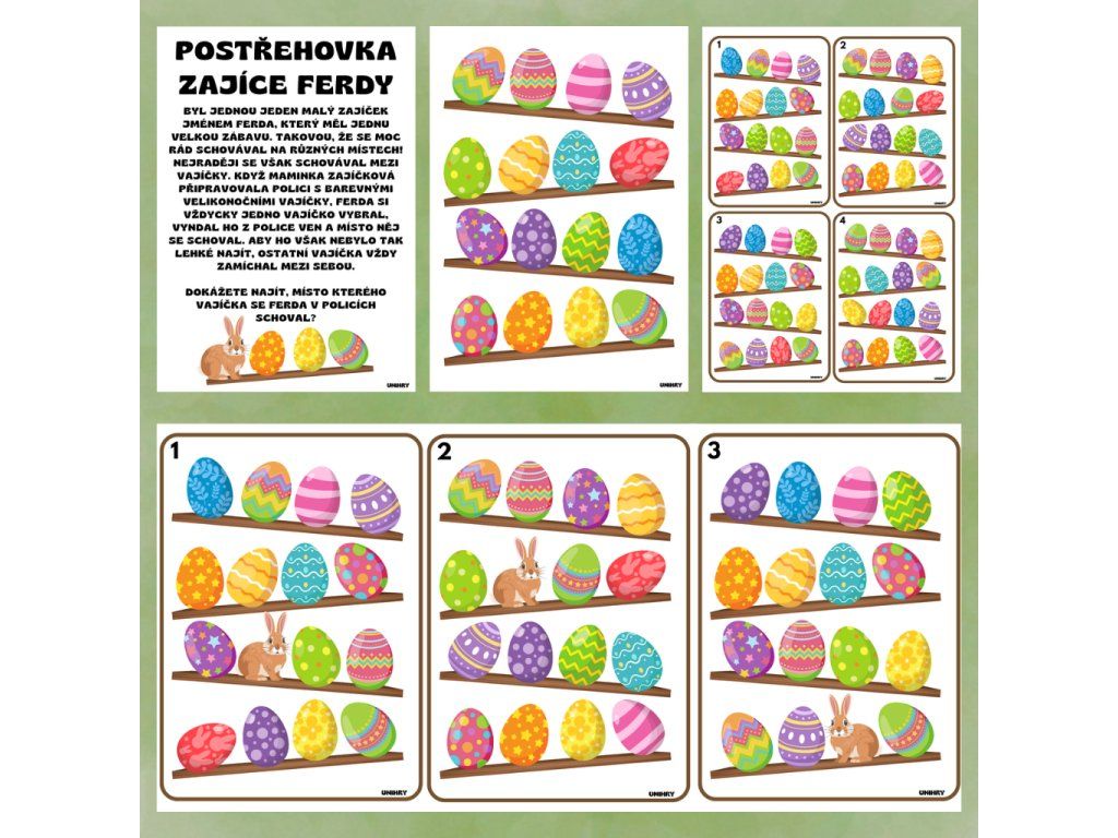 Vydejte se se zajíčkem Ferdou mezi barevná vajíčka a zkuste odhalit, místo kterého vajíčka se právě schoval. Kdo bude nejrychlejší?